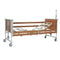 Built for durability and patient comfort, this hospital bed features a reinforced metal frame with electrostatic powder coating, a stylish wooden headboard and side panels, and an automatic backrest sliding system to reduce pressure points. It comes with a high-density foam mattress, optional metal side rails, and four lockable caster wheels (4.92" / 125 mm) for easy movement. A protective head-end bumper enhances safety, making this bed a professional-grade choice for long-term care at home.